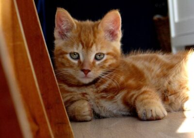 De jonge kater die samen met een poes en haar kittens in een kelder was gevonden, werd apart opgevangen omdat hij eerst gecastreerd moest worden. Maar hij bleef onrustig. Toen viel het kwartje… hij is de vader! Na hereniging in de huiskamer, zorgde hij liefdevol voor zijn kleintjes en was onafscheidelijk van zijn vriendinnetje. Uiteraard zijn de poes en kater samen geplaatst en leven hopelijk nog lang en gelukkig!
