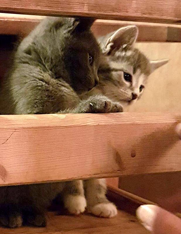 Toen bij een mevrouw in Ouddorp haar nieuwe kast werd bezorgd, ontdekte de chauffeur 5 kleine verstekelingen. Waarschijnlijk dacht een moederpoes haar kittens veilig onder te brengen in de laadruimte. Niet dus, helaas. De onvrijwillige reizigers kwamen van ver en waren 100 kilometer meegelift, helemaal uit Bunnik! Na opvang in een gastgezin zijn uiteindelijk alle katjes echte Rijnmonders geworden.