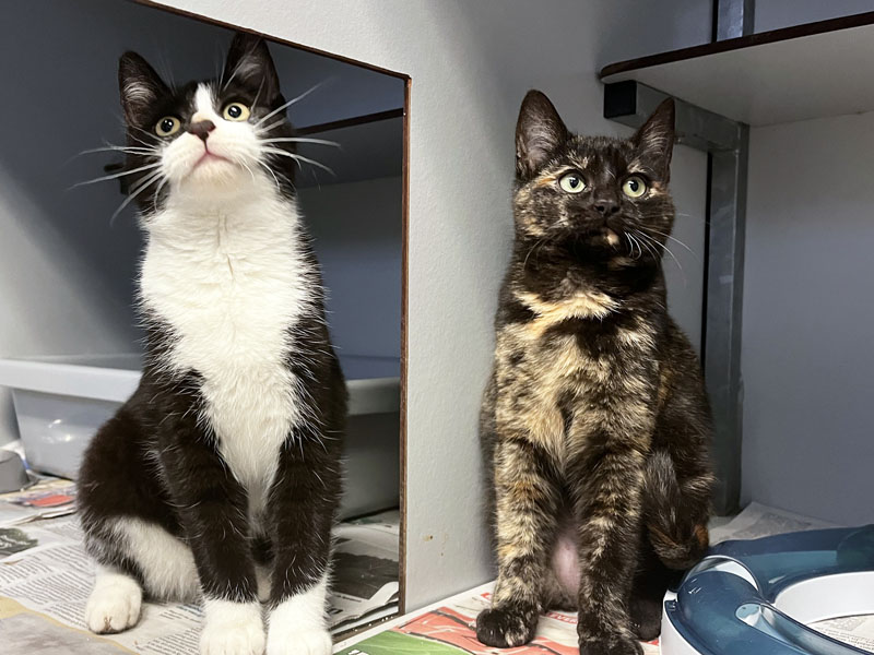 Een kerstverhaal… In een schuurtje werd begin december een zwerfkat aangetroffen die daar schuilde met haar vijf kittens. Uiteraard waren ze welkom bij ons in de kattenopvang. Echter, bij de dierenarts bleek de beoogde moederpoes toch echt een kater te zijn! Huh, hoe zit dit? En waar is moeders? Na wat gepuzzel: een van de kleintjes was dus helemaal geen kitten! Tja, poes is wat klein van stuk en de kittens zijn al wat ouder. Hoe dan ook, onze kerststal is goed gevuld: met een Jozef, een Maria, een kleine Jezus en drie andere wijsneusjes. Jozef en een wijsneusje hebben wat langer nodig om het geloof terug te vinden maar de andere vier willen graag zo snel mogelijk hun kerststal verruilen voor een heilig plekje bij u op de bank om gezellig de feestdagen door te brengen. We willen ze als twee koppeltjes plaatsen: