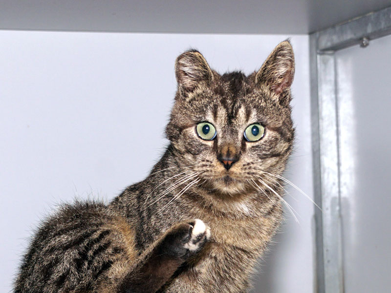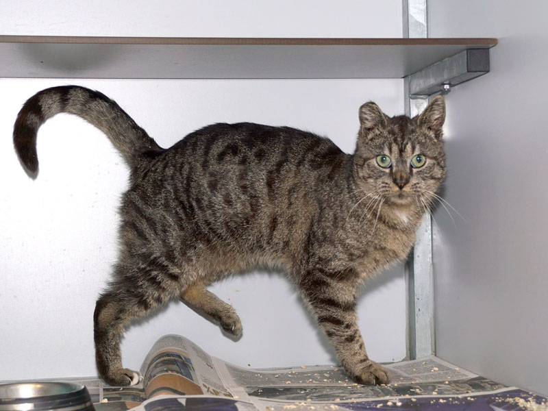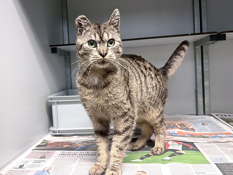 Kippie, een wat klein uitgevallen en vrolijk katertje, zat eerder bij ons in de opvang. Samen met een groep zwerfkatten die verzorgd werd door de melder. Na behandeling keerden ze allemaal terug naar hun vertrouwde stek. En toen de verzorger begin dit jaar vertrok, waren de katten welkom bij een buur. Maar Kippie vond de scharrelende krielkippen op het erf iets te leuk en zat ze telkens achterna. Kortom, de dames geraakten gelijk van de leg en het was dan ook beter dat deze struise jongeman een functie elders kreeg.