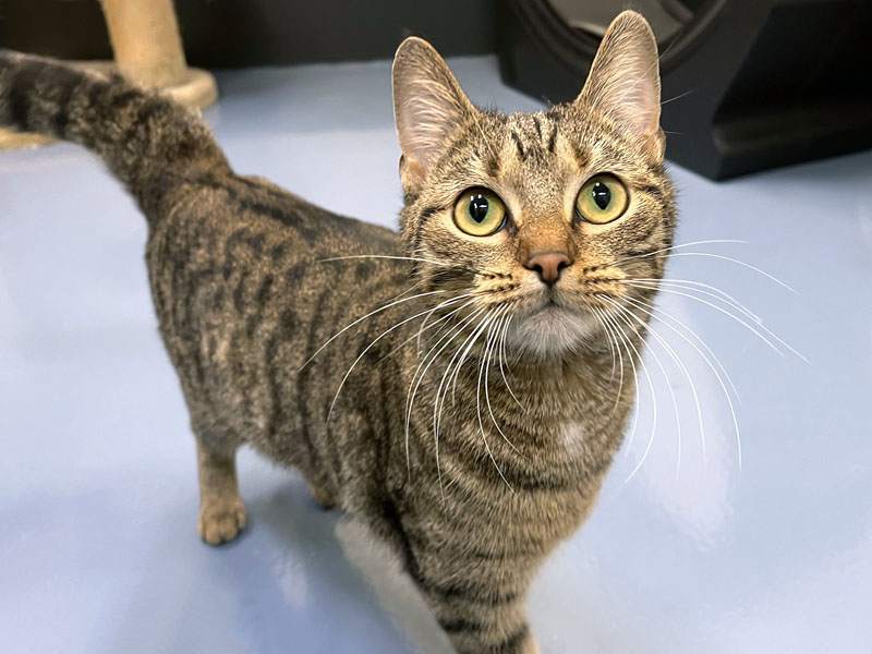 Muntje had het al snel bekeken in haar kamertje bij ons. Tja, deze ongedurige jonge blom wil het liefst een ruim huis waar ze naar hartenlust kan spelen, rennen, kattenkwaad uithalen, kroelen en alles wat een levendig poesje zoal betaamt. Intussen heeft ze de grootste kamer van de opvang maar ook die is nauwelijks genoeg voor haar tomeloze energie en enthousiasme. Muntje wil gewoon vliegen. Ze strijkt nog maar eens met haar pootje over het witte vlekje: “Zal ook dit keer het geluk mijn kant opvallen?” Nou, wij denken van wel!