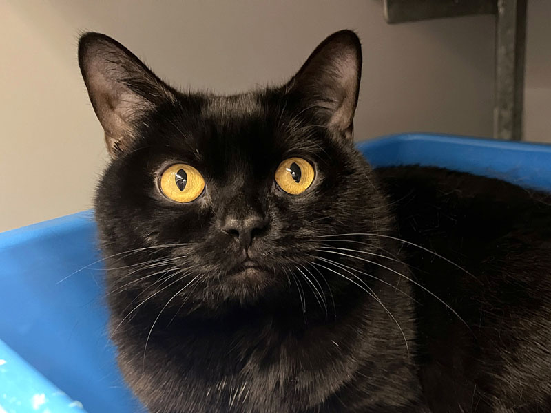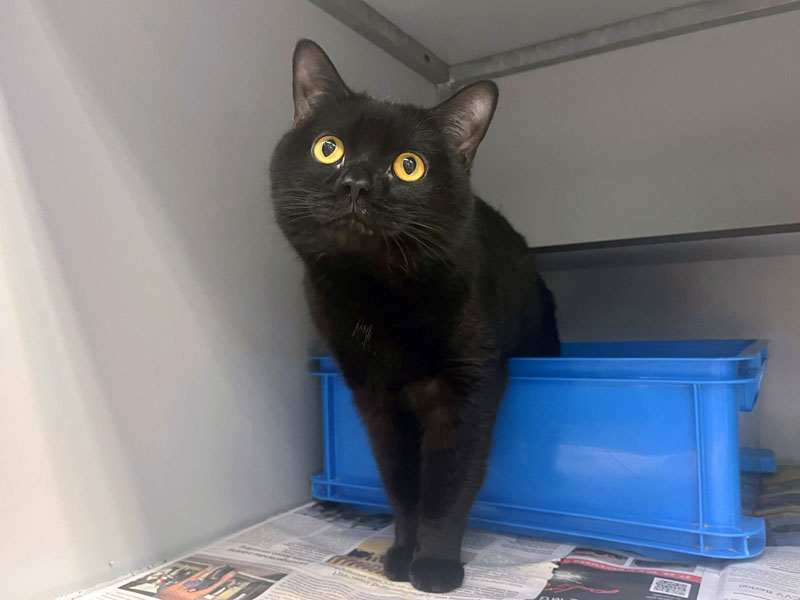 Onyx (1 jaar) is echt een juweeltje om te zien. De diepzwarte vacht en dan die goudgele ogen! Je zou hem zo in de armen willen sluiten om te knuffelen. Maar daar moet je nog even geduld voor hebben. Onyx heeft het nodige meegemaakt en is nog wat angstig. Maar hij begint voorzichtig weer het vertrouwen in mensen te hervinden. De eerste stapjes zijn alvast gezet: verlegen draait Onyx zich op zijn rug voor een aai… prrrrr… een zacht geronk stijgt op. Heerlijk vindt hij dat!